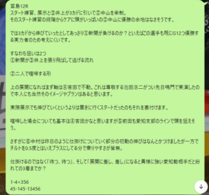元々3コースの信頼がものすごい低い③。道中もフラフラしており状態にも不満が残ります。