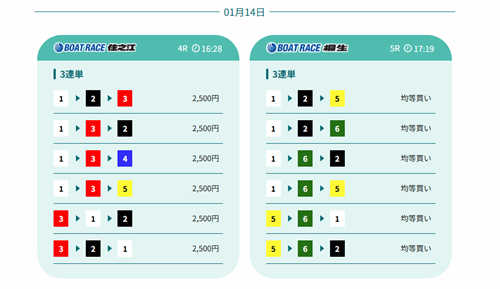 平和島7R 3-2-1:2,500円 × 53.2倍 |